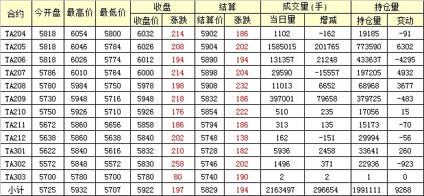 主力TA205合約當(dāng)日交易走勢(shì)