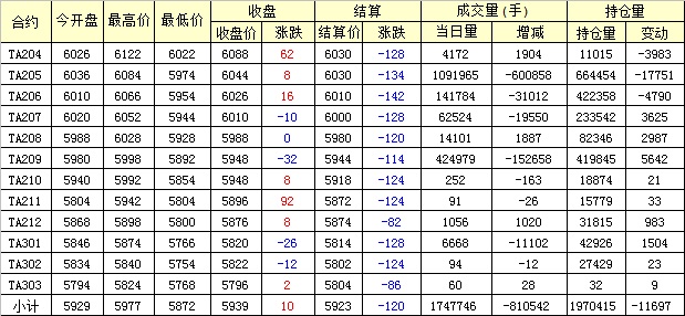 主力TA205合約當(dāng)日交易走勢