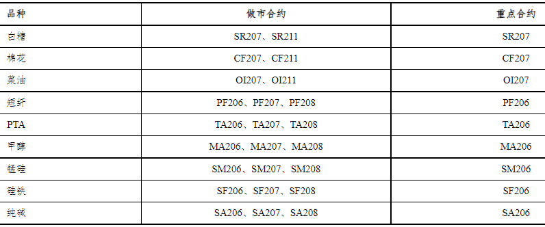 表 2022年4月各期貨品種做市合約和重點(diǎn)合約