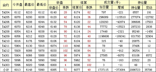 主力TA205合約當(dāng)日交易走勢(shì)