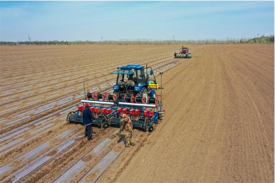 4月11日,在呼圖壁縣大豐鎮(zhèn)樹(shù)窩子村棉田里,衛(wèi)星導(dǎo)航無(wú)人駕駛農(nóng)機(jī)正在播種棉花。據(jù)悉,今年該縣計(jì)劃種植棉花55萬(wàn)畝,截至目前已播種3.2萬(wàn)畝,各鄉(xiāng)鎮(zhèn)槍抓農(nóng)時(shí),全力以赴做好依托智能農(nóng)機(jī)實(shí)施精準(zhǔn)化、智能化田間作業(yè),提升播種質(zhì)量和速度,預(yù)計(jì)4月底將完成棉花播種任務(wù)。