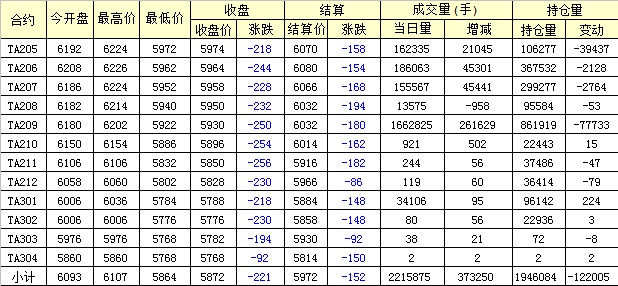 主力TA205合約當(dāng)日交易走勢(shì)