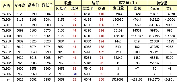 主力TA205合約當(dāng)日交易走勢