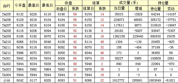 主力TA205合約當(dāng)日交易走勢
