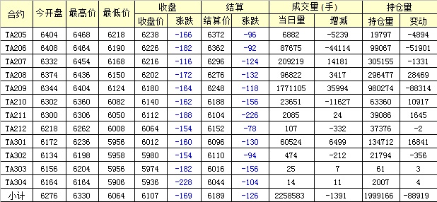 主力TA209合約當(dāng)日交易走勢