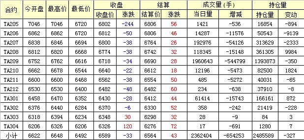 主力TA209合約當(dāng)日交易走勢(shì)
