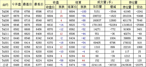 主力TA209合約當(dāng)日交易走勢