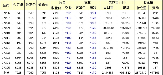 主力TA209合約當(dāng)日交易走勢