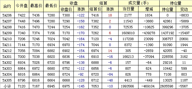 主力TA209合約當(dāng)日交易走勢(shì)