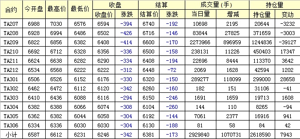 主力TA209合約當(dāng)日交易走勢