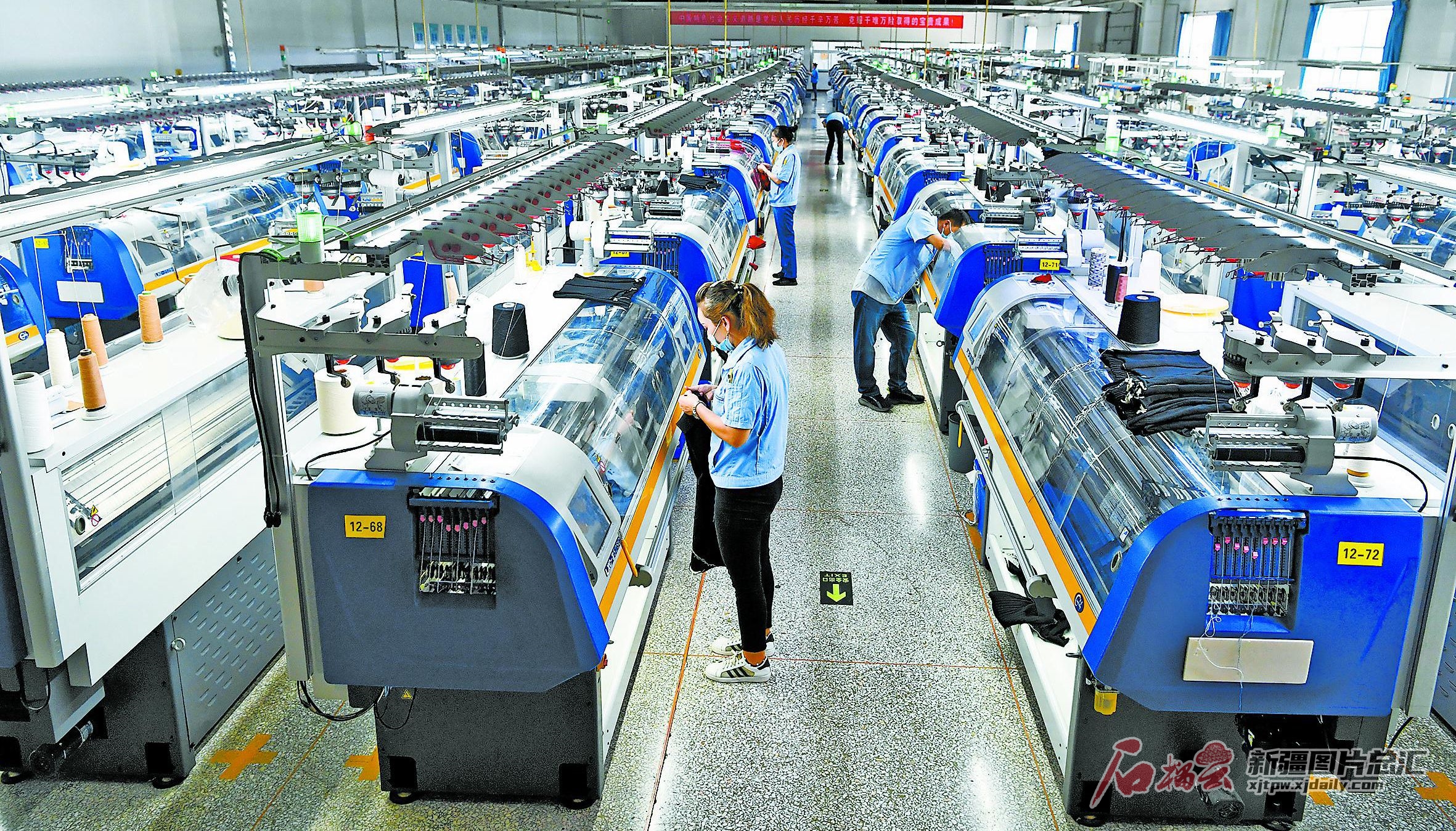 8月10日,在位于烏魯木齊高新技術(shù)產(chǎn)業(yè)開發(fā)區(qū)(新市區(qū))北區(qū)工業(yè)園的天山紡織工業(yè)園區(qū)內(nèi),針織電腦橫機(jī)正在有序運(yùn)轉(zhuǎn),確保訂單按期交付。
