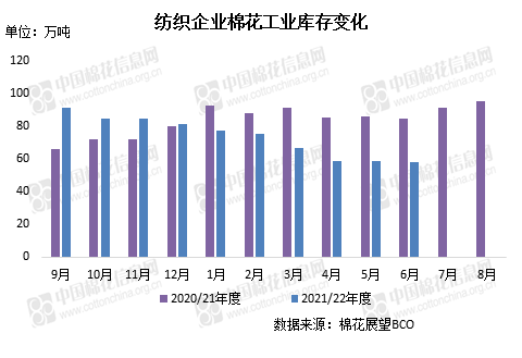 棉企銷售較積極,部分紡企利潤也得到改善,但由于庫存壓力較大、下游訂單依然疲軟,且棉價波動幅度較大,企業(yè)采購原料依然謹(jǐn)慎,采購量未有明顯增加。截至7月30日,紡織廠在庫棉花工業(yè)庫存量為57.81萬噸,較上月底減少1.1萬噸,同比減少26.55萬噸。其中:35%企業(yè)減少棉花庫存,19%增加庫存,46%基本保持不變。