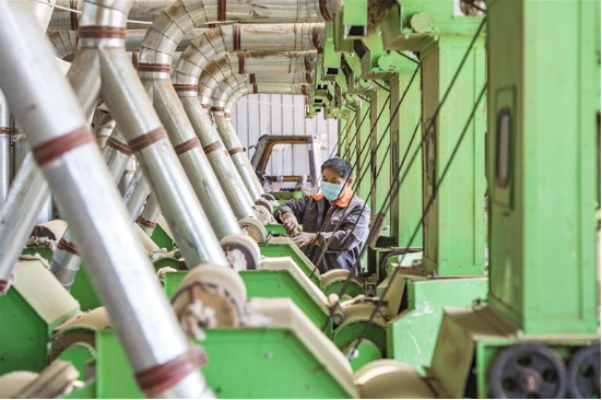 9月5日,位于呼圖壁縣五工臺鎮(zhèn)的云龍棉業(yè)有限公司車間,員工在檢修棉花加工設備。