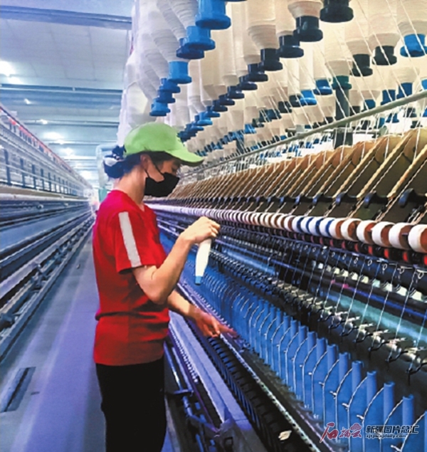 工人在紡紗車間作業(yè)(8月31日攝)。目前,位于沙灣市金溝河鎮(zhèn)工業(yè)園區(qū)的新疆裕鑫源紡織有限公司加緊生產棉紗產品,月產棉紗600多噸,俏銷廣東、江蘇等地。