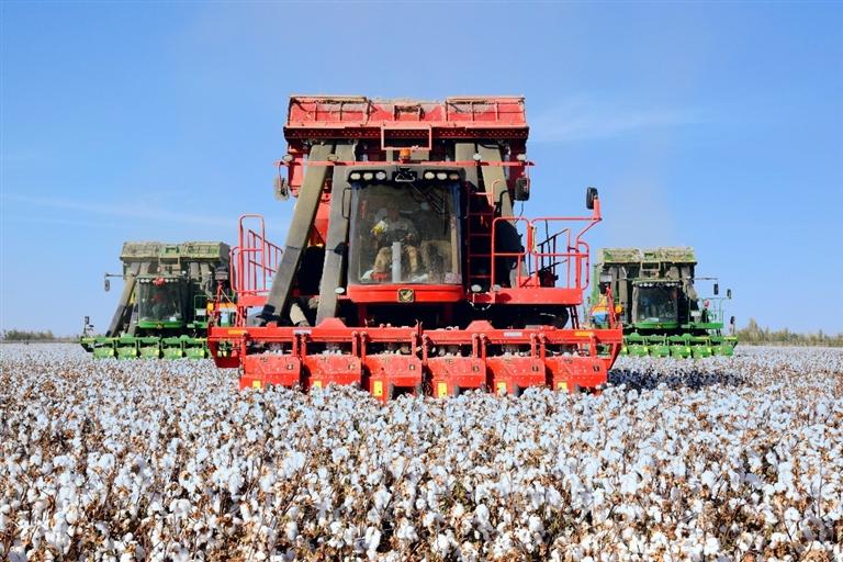 蔣道元說,過去種植100多畝地棉花,要雇用十幾人,采收更是要花費(fèi)近2個(gè)月時(shí)間?,F(xiàn)在使用采棉機(jī),1000多畝棉花2天時(shí)間就可以完成采收。“現(xiàn)在播種、施肥、噴灑農(nóng)藥、采收全部實(shí)行機(jī)械化,既節(jié)省人工成本,也提升棉花產(chǎn)量?!笔Y道元說。