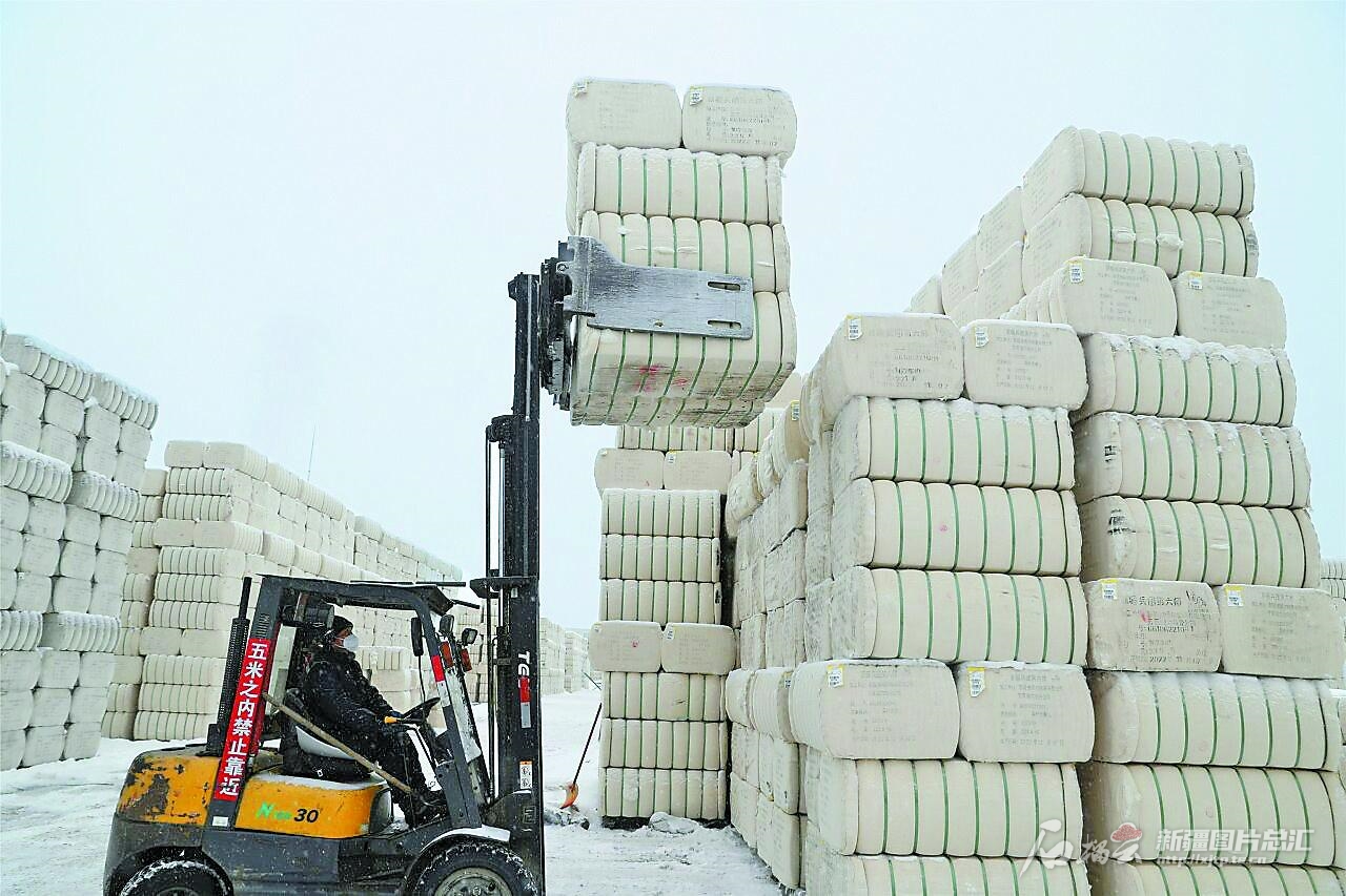 12月10日,自治區(qū)棉麻公司烏魯木齊棉麻站員工在轉(zhuǎn)運棉包。自9月1日以來,烏魯木齊棉麻站入庫新棉66508噸,累計出庫達39647噸。
