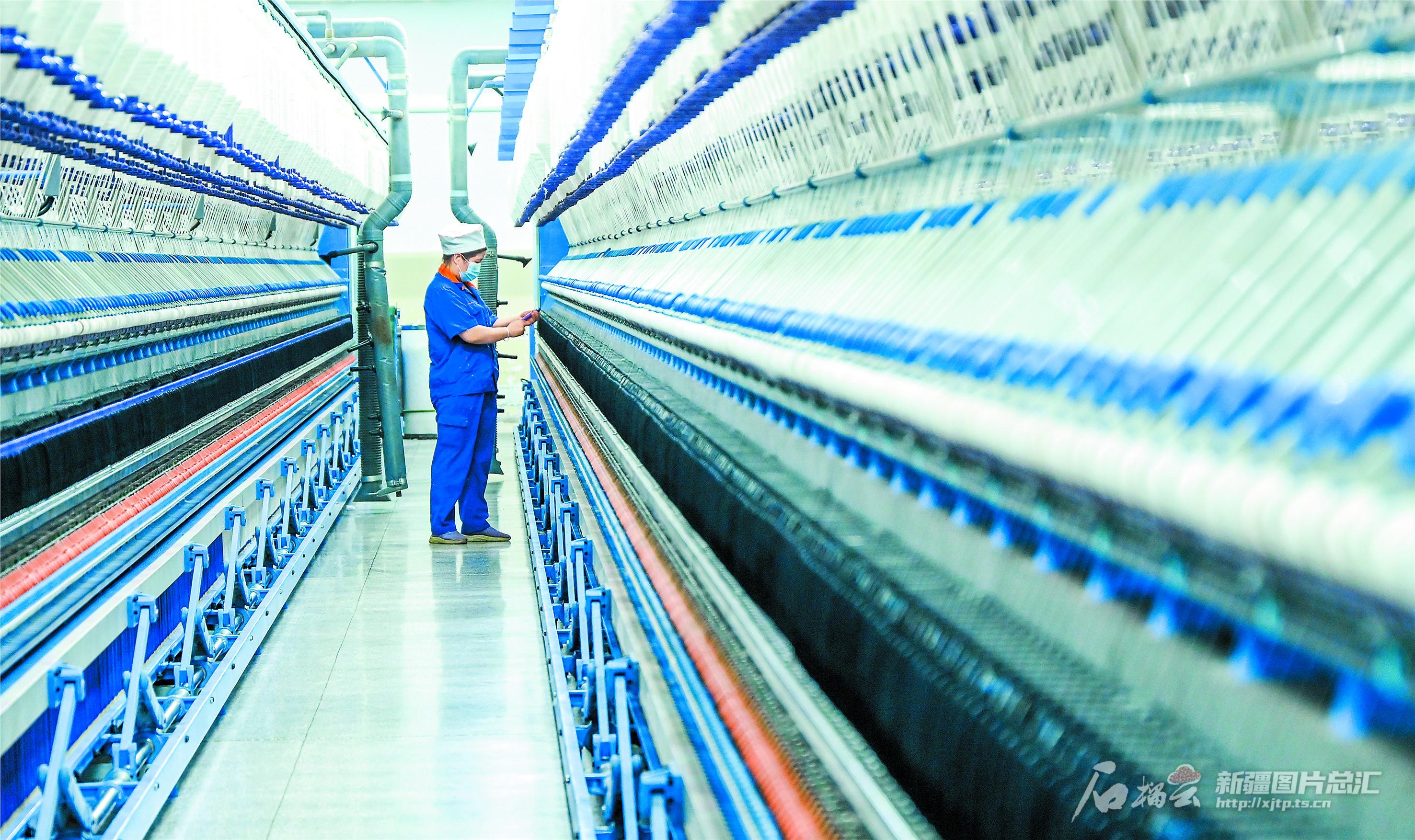 2月13日,在位于呼圖壁縣五工臺(tái)鎮(zhèn)的新疆宇華紡織科技有限公司車間,工人在智能化生產(chǎn)線上生產(chǎn)棉紗產(chǎn)品。目前,公司日生產(chǎn)規(guī)模折合紗錠28萬(wàn)錠,日生產(chǎn)量達(dá)66噸。近年來(lái),呼圖壁縣依托當(dāng)?shù)貎?yōu)質(zhì)棉花資源,培育壯大棉花和紡織服裝產(chǎn)業(yè),持續(xù)帶動(dòng)當(dāng)?shù)剞r(nóng)牧民就業(yè)增收,助力鄉(xiāng)村振興。