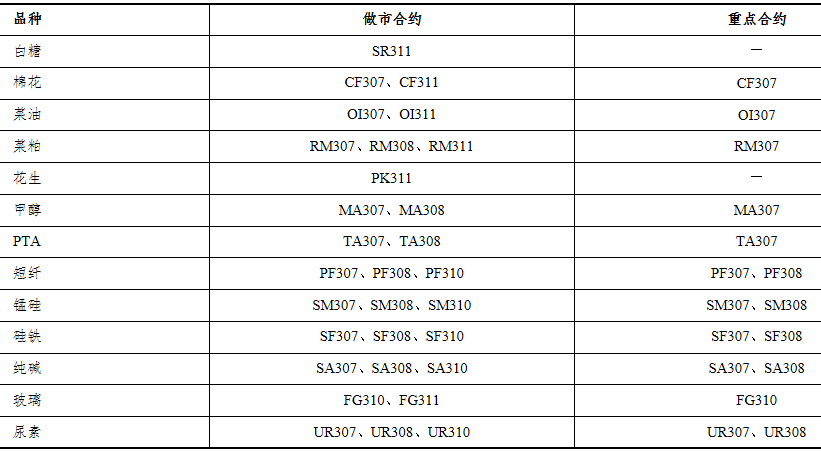表 2023年5月各期貨品種做市合約和重點(diǎn)合約