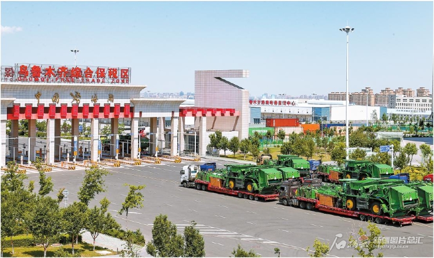 5月31日,一輛輛綠色涂裝的采棉機在烏魯木齊綜合保稅區(qū)門前整齊停放,等待辦理海關(guān)相關(guān)手續(xù)(無人機攝)。據(jù)了解,此次37臺進口采棉機是烏魯木齊綜合保稅區(qū)首單保稅大型農(nóng)業(yè)機械設(shè)備。