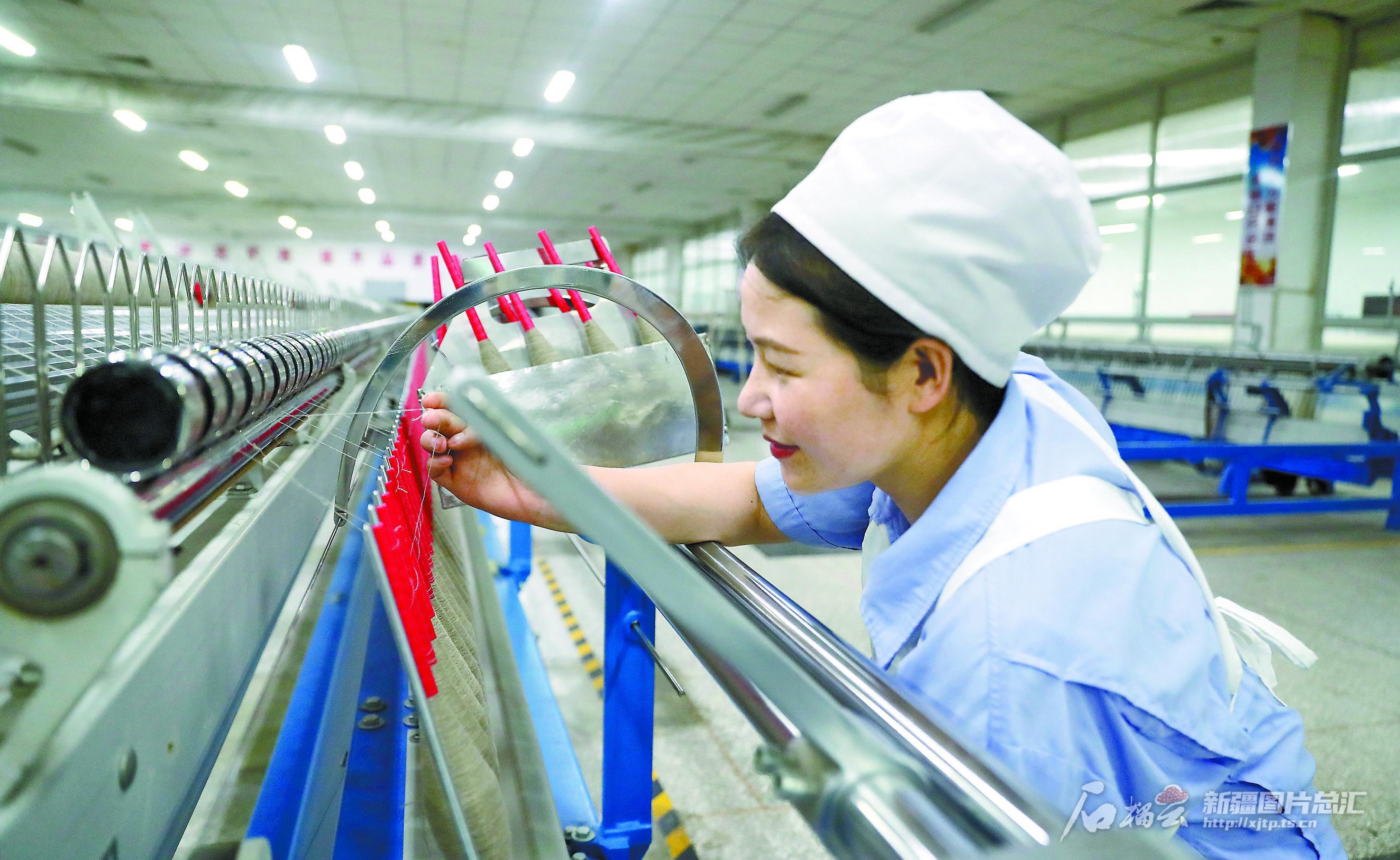 6月10日,員工在梳紡車間作業(yè)。新疆天山毛紡織股份有限公司各生產車間,現(xiàn)代化機器全線開動,員工在各自崗位上有序生產,確保訂單產品保質保量。今年以來,該公司已累計紡紗118噸,較去年同期增長18%。