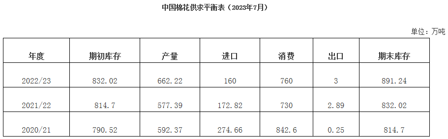 7月18日,有關(guān)部門發(fā)布公告,根據(jù)國家相關(guān)部門要求,為更好滿足棉紡廠用棉需求,近期組織銷售部分中央儲備棉。時間:2023年7月下旬開始,每個國家法定工作日掛牌銷售;每日掛牌銷售數(shù)量根據(jù)市場形勢等安排;掛牌銷售底價隨行就市動態(tài)確定,原則上與國內(nèi)外棉花現(xiàn)貨價格掛鉤聯(lián)動,由國內(nèi)市場棉花現(xiàn)貨價格指數(shù)和國際市場棉花現(xiàn)貨價格指數(shù)各按50%的權(quán)重計算確定,每周調(diào)整一次。