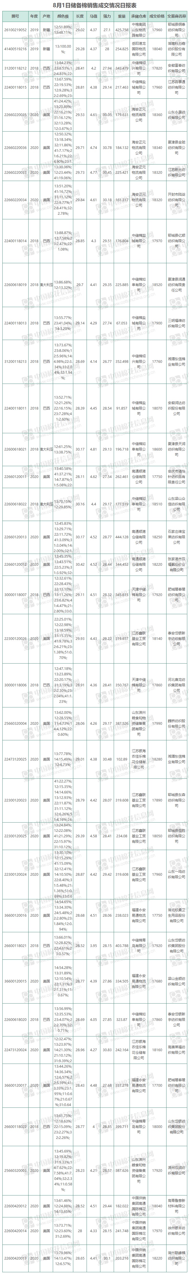 8月1日儲備棉銷售資源10005.103噸,實際成交10005.103噸,成交率100%,成交均價18019元/噸,較前一日上漲58元/噸,折3128價格18588元/噸,較前一日上漲102元/噸。