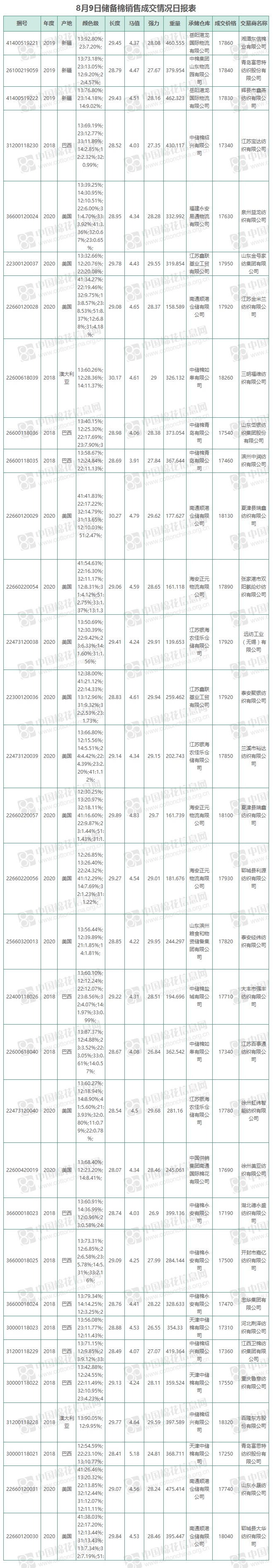 8月9日儲(chǔ)備棉銷售資源10005.2792噸,實(shí)際成交10005.2792噸,成交率100%,成交均價(jià)17697元/噸,較前一日上漲50元/噸,折3128價(jià)格18221元/噸,較前一日上漲66元/噸。