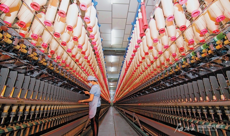 8月14日,昌吉溢達(dá)紡織有限公司員工在紡織車間整理紡線。目前,昌吉回族自治州全程機(jī)械化優(yōu)質(zhì)棉基地面積達(dá)200萬(wàn)畝以上,皮棉年產(chǎn)量超過35萬(wàn)噸,已建成棉紡加工及紡織服裝兩個(gè)產(chǎn)業(yè)集聚區(qū)。