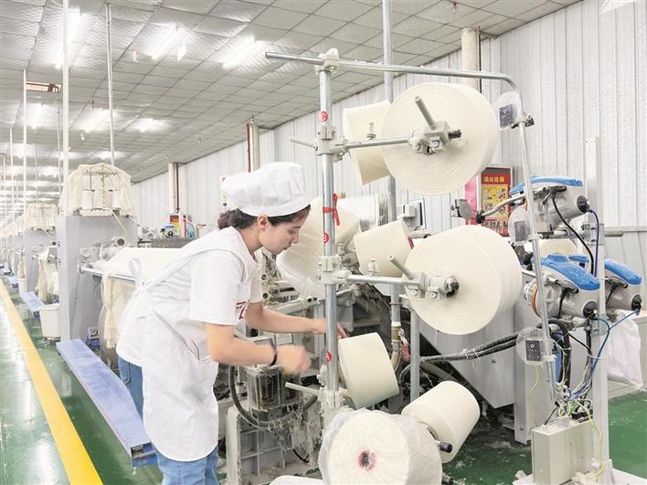 8月18日,在新疆冠圖紡織科技有限公司生產(chǎn)車間,紡織工人正在工作。在三師圖木舒克市惠企政策措施支持下,該公司去年3月入駐圖木舒克經(jīng)濟(jì)開發(fā)區(qū),今年上半年已實(shí)現(xiàn)產(chǎn)值6000萬(wàn)元。