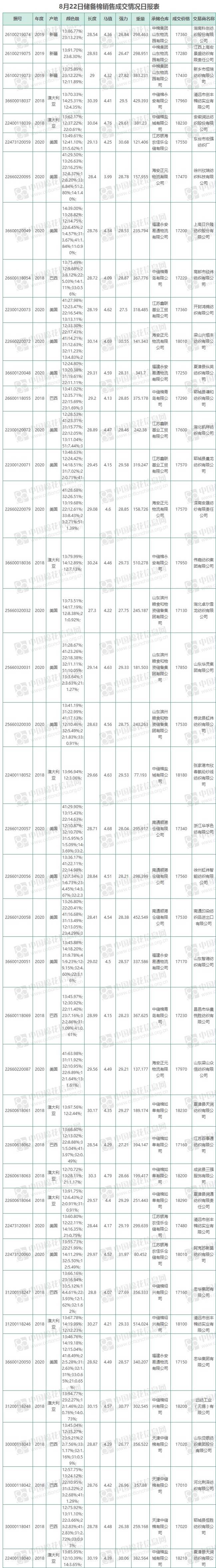 8月22日儲備棉銷售資源12001.4495噸,實際成交12001.4495噸,成交率100%,成交均價17554元/噸,較前一日上漲43元/噸,折3128價格17992元/噸,較前一日下跌55元/噸。