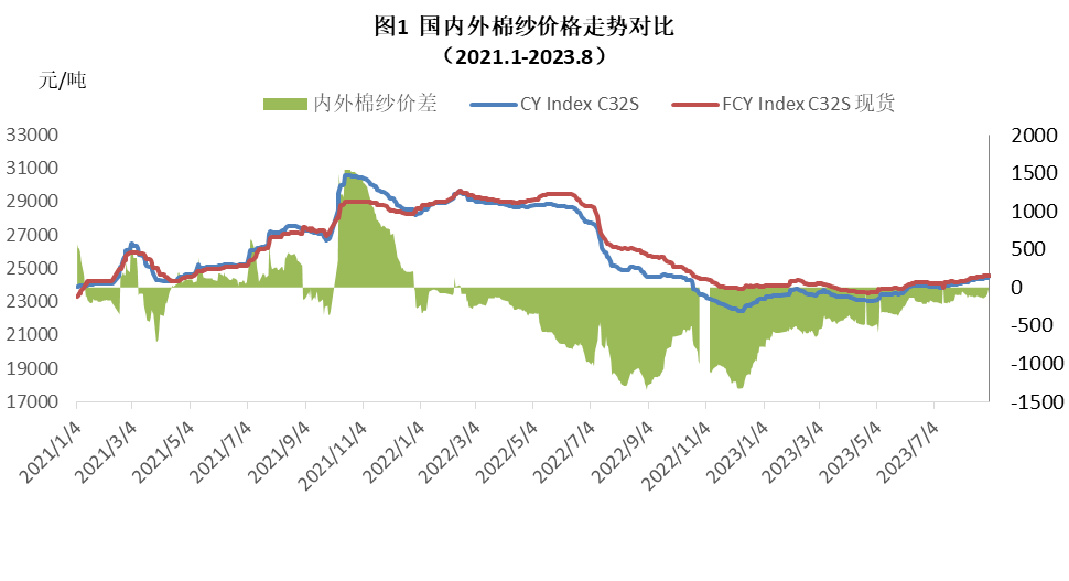 二、內(nèi)外棉紗月度均價(jià)略有上漲