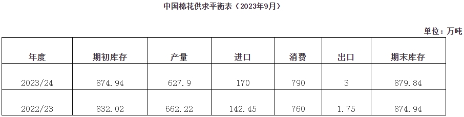 8月,據(jù)中國(guó)棉花協(xié)會(huì)調(diào)查,2023/24年度全國(guó)植棉面積4148.9萬(wàn)畝,同比下降7.6%,預(yù)計(jì)總產(chǎn)量627.9萬(wàn)噸,同比下降5.2%,各主要棉區(qū)單產(chǎn)均有所增長(zhǎng),但由于面積降幅較大,總產(chǎn)仍出現(xiàn)下降。分區(qū)域看:新疆棉花處花鈴生長(zhǎng)后期,部分進(jìn)入吐絮期,生長(zhǎng)初期受寒冷天氣影響,總體長(zhǎng)勢(shì)一般,但后期氣象條件恢復(fù)正常,對(duì)棉花生長(zhǎng)較為有利,預(yù)計(jì)總產(chǎn)593萬(wàn)噸,同比下降4.1%,占全國(guó)總產(chǎn)量的94.4%;黃河流域棉區(qū)天氣基本正常,病害發(fā)生較輕,但蟲(chóng)害發(fā)生稍重于去年,預(yù)計(jì)總產(chǎn)18.3萬(wàn)噸,同比下降23.2%;長(zhǎng)江流域棉花長(zhǎng)勢(shì)好于去年,8月后期強(qiáng)降水導(dǎo)致棉花吐絮期延遲,少量上部蕾鈴脫落,但大部棉農(nóng)反映對(duì)最終產(chǎn)量影響不大,該棉區(qū)預(yù)計(jì)產(chǎn)量14.1萬(wàn)噸,同比下降12.1%。