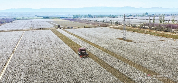 10月5日,采棉機(jī)在呼圖壁縣大豐鎮(zhèn)紅柳塘村的棉田里采收棉花。眼下,該縣種植的52.6萬畝棉花全面進(jìn)入采收期,并全部實(shí)現(xiàn)機(jī)械化采收作業(yè)。