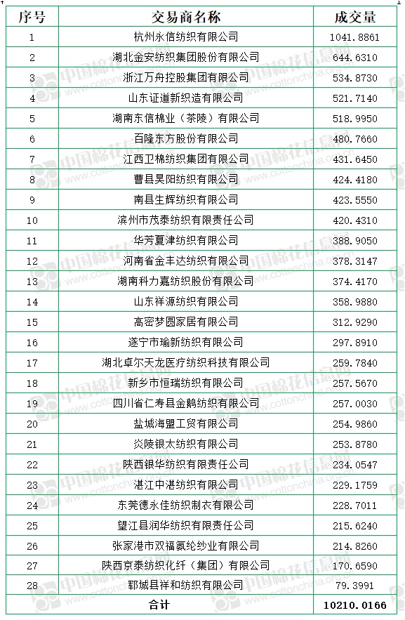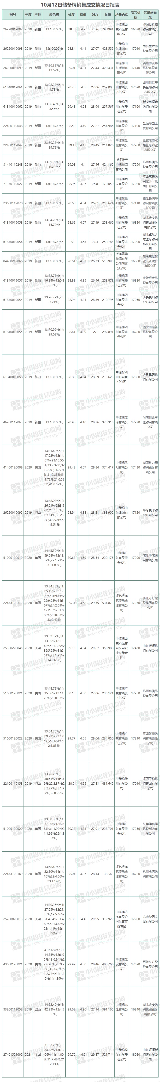 10月12日儲備棉銷售資源20000.7928噸,實際成交10210.0166噸,成交率51.05%,成交均價17171元/噸,較前一日下跌98元/噸,折3128價格17682元/噸,較前一日下跌125元/噸。