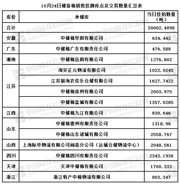 附件:1、10月24日上市銷(xiāo)售儲(chǔ)備棉數(shù)據(jù)明細(xì)表(進(jìn)口棉)