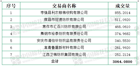 新疆棉成交均價(jià)16624元/噸,較前一日上漲16元/噸,新疆棉折3128價(jià)格17233元/噸,較前一日下跌20元/噸,新疆棉平均加價(jià)幅度14元/噸。