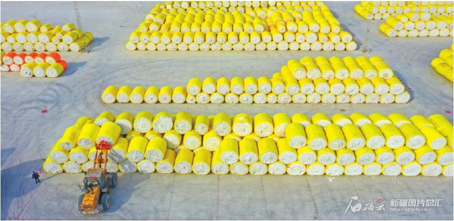 10月26日,博樂市聚鑫棉業(yè)有限責(zé)任公司工人駕駛叉車碼放棉花。今年,該公司預(yù)計(jì)收購新棉4萬噸,可實(shí)現(xiàn)年產(chǎn)值2.5億元。
