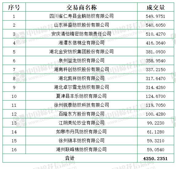 新疆棉成交均價(jià)15981元/噸,較前一日下跌128元/噸,新疆棉折3128價(jià)格16674元/噸,較前一日上漲13元/噸,新疆棉平均加價(jià)幅度66元/噸。