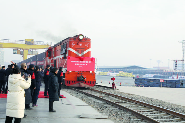 1月10日,阿克蘇至長三角首趟新疆鄉(xiāng)村振興圖定班列開行。