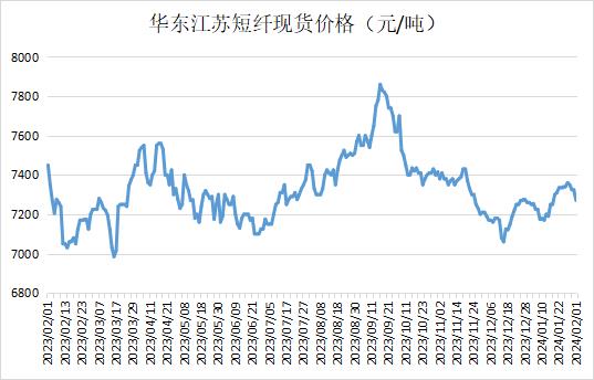 江蘇滌綸短纖現(xiàn)貨價(jià)格下跌20元到7250元/噸自提。原油下跌,疊加下游季節(jié)性集中放假關(guān)停影響,上午短纖價(jià)格延續(xù)弱勢(shì),目前現(xiàn)貨一口價(jià)商談7260-7300元/噸自提,偏低品牌7200-7220元/噸;基差主流03-100,偏低03-160。