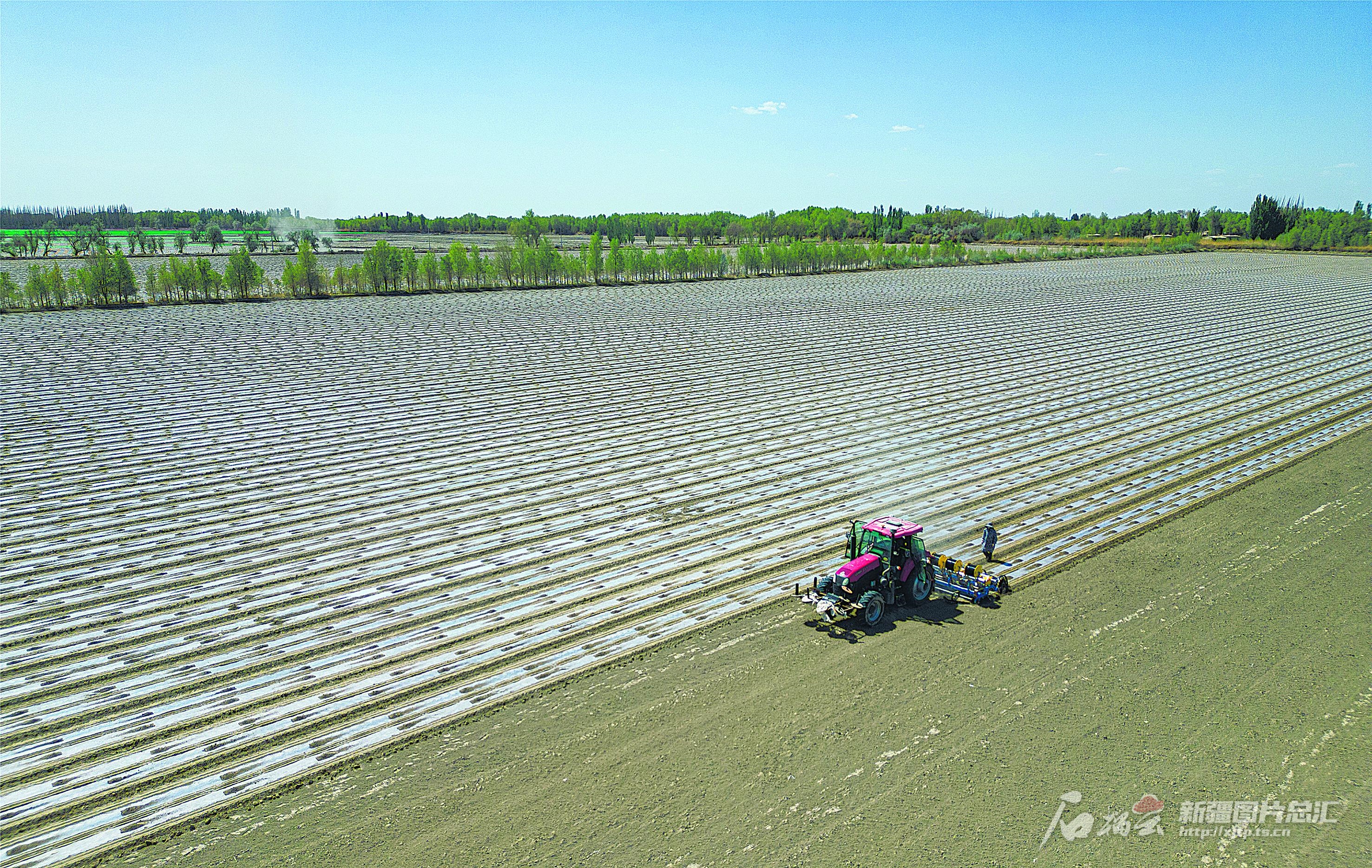 4月19日,在尉犁縣興平鎮(zhèn)統(tǒng)其克村的一塊高標(biāo)準(zhǔn)棉田里,無人駕駛北斗導(dǎo)航播種機在棉花地里精量播種。今年,尉犁縣計劃種植棉花105萬畝,主要采取“干播濕出”“一膜三帶”等技術(shù)播種棉花,大力發(fā)展高效節(jié)水農(nóng)業(yè)。