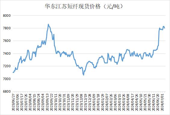 江蘇滌綸短纖現(xiàn)貨價格下跌40元在7750元/噸。PTA現(xiàn)貨價格下調,且早間PF期貨延續(xù)跌勢,部分貿易商出貨價格有所松動;目前工廠售價暫穩(wěn)于8000元/噸自提,貿易商一口價7720-7800元/噸自提。