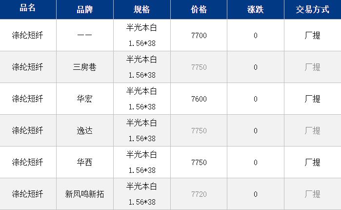 江蘇滌綸短纖現(xiàn)貨價格暫穩(wěn)于7700元/噸。上周五原油跌幅較大,且產(chǎn)業(yè)鏈自身利好驅(qū)動暫時缺乏,早間PF期貨偏弱震蕩,現(xiàn)貨價格暫時變動有限,目前工廠價格維持7900元/噸附近自提,貿(mào)易商一口價7670-7700元/噸自提,偏低7550-7600元/噸,偏高7750-7800元/噸。