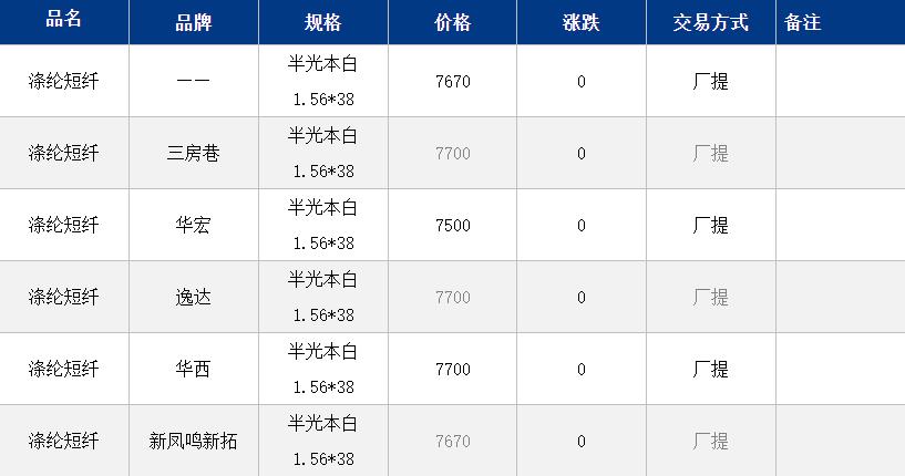 江蘇滌綸短纖現(xiàn)貨價(jià)格穩(wěn)定7670元/噸。上午短纖期現(xiàn)貨波動(dòng)不大;目前工廠(chǎng)價(jià)格7700元/噸附近自提,貿(mào)易商一口價(jià)7650元/噸附近自提;基差方面,主流品牌10+150。