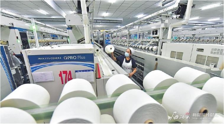 8月8日,工人在庫爾勒經(jīng)濟技術(shù)開發(fā)區(qū)某紡織企業(yè)生產(chǎn)車間作業(yè)。近年來,開發(fā)區(qū)積極推進紡織服裝產(chǎn)業(yè)升級,鼓勵引導(dǎo)企業(yè)進行科技創(chuàng)新,上半年紡織服裝企業(yè)實現(xiàn)產(chǎn)值61.85億元,同比增長10.13%。