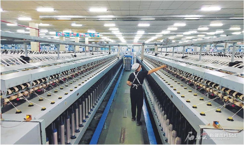 8月12日,工人在位于沙灣市的新疆興泰纖維科技有限公司生產(chǎn)車間查看設(shè)備運(yùn)行情況。今年上半年,該公司生產(chǎn)棉紗1.7萬噸、漿粕1.48萬噸,合成人工纖維5.34萬噸,實(shí)現(xiàn)產(chǎn)值7.3億元。