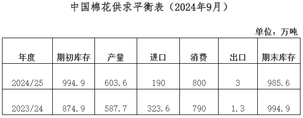 8月,全國(guó)大部棉花處吐絮期,新疆局部地區(qū)進(jìn)入吐絮盛期,氣候條件總體適宜。國(guó)內(nèi)棉市供應(yīng)寬松,棉紡織行業(yè)臨近傳統(tǒng)旺季,部分企業(yè)低位補(bǔ)庫(kù),帶動(dòng)棉價(jià)在下半月出現(xiàn)小幅反彈,但受今年棉花豐產(chǎn)預(yù)期影響,反彈幅度有限,企業(yè)對(duì)后市信心不足。中國(guó)棉花協(xié)會(huì)預(yù)測(cè):2024/25年度全國(guó)棉花產(chǎn)量603.6萬噸,同比增長(zhǎng)2.7%;棉花進(jìn)口量190萬噸,同比下降41.3%;消費(fèi)量800萬噸,同比增長(zhǎng)1.3%;期末庫(kù)存985.5萬噸,同比下降0.9%。