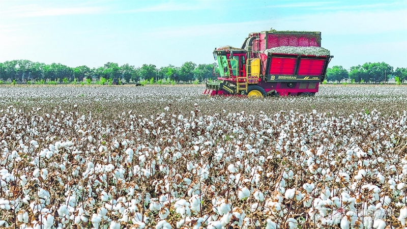 在呼圖壁縣大豐鎮(zhèn)聯(lián)豐村的棉田里,棉農(nóng)搶抓晴好天氣采收棉花(10月2日攝)。眼下,該縣種植的61.15萬畝棉花陸續(xù)進入采收期,當?shù)胤e極組織人力、機械加緊采收。