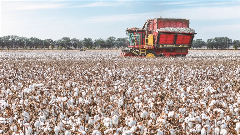 眼下,呼圖壁縣種植的61.15萬畝棉花陸續(xù)進(jìn)入采收期,當(dāng)?shù)馗鬣l(xiāng)鎮(zhèn)積極組織人力與機(jī)械,加緊采收棉花,確保朵絮歸倉。圖為10月2日,呼圖壁縣大豐鎮(zhèn)聯(lián)豐村棉農(nóng)利用采棉機(jī)采收棉花。