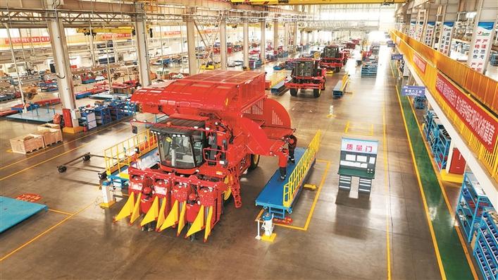 12月24日,在五家渠經(jīng)濟技術(shù)開發(fā)區(qū)新疆天鵝現(xiàn)代農(nóng)業(yè)機械裝備有限公司生產(chǎn)車間,工人組裝采棉機。該公司是兵團(tuán)農(nóng)機裝備產(chǎn)業(yè)鏈“鏈主”企業(yè),也是國家級重點專精特新“小巨人”企業(yè)。今年以來,該公司在新產(chǎn)品研發(fā)等方面持續(xù)發(fā)力,呈現(xiàn)產(chǎn)銷兩旺良好勢頭。